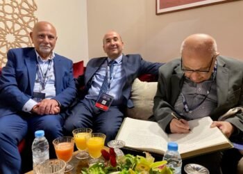 صور مختلفة لمشاركة رئيس ومديرة مركز الحسو في ندوة علمية بمعرض الرباط الدولي المغرب 2023