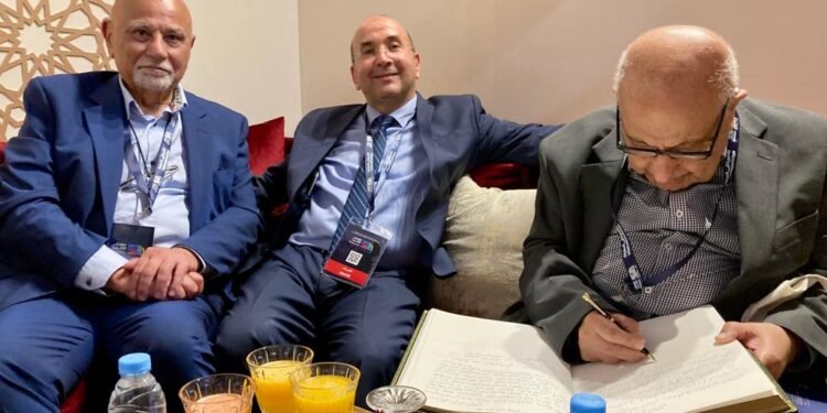 صور مختلفة لمشاركة رئيس ومديرة مركز الحسو في ندوة علمية بمعرض الرباط الدولي المغرب 2023